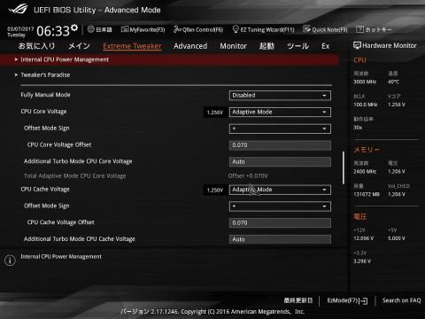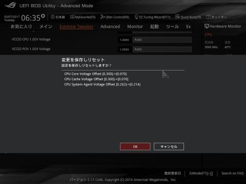CPU Cache Voltage Offset [+0.015]アンコア電圧