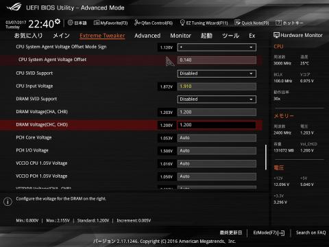 DRAM Voltage CHA/CHB [1.200] A/Bメモリの電圧