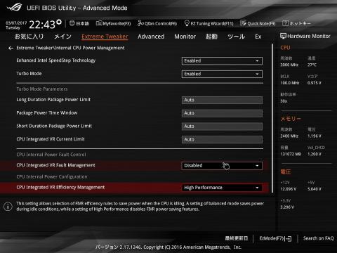 CPU Integrated VR Fault Management [Disabled]OCするならDisabled推奨らしい