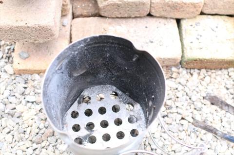 しばらくは熱いので、冷めるまで放置しますが、中で燃え残った炭は再利用が可能です。