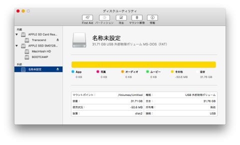 USBメモリ初期フォーマット:FAT32