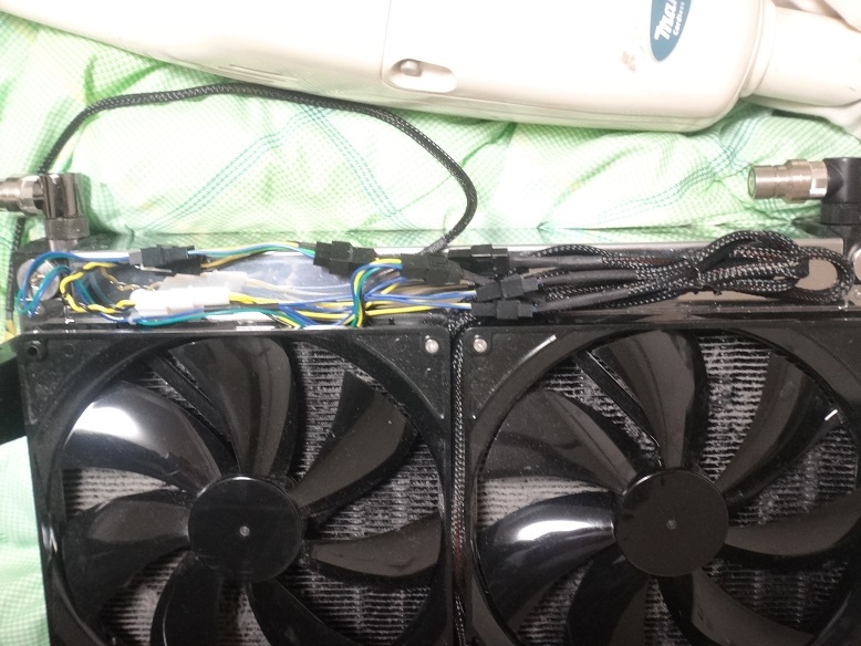 MO-RA3 360 PRO(180mmファン4つを500RPMでゆるゆる回転)を導入して以来、TitanXのSLIを電圧盛ってOCして40~50度で余裕で運用できるようになって冷却面での不安は一掃されました。