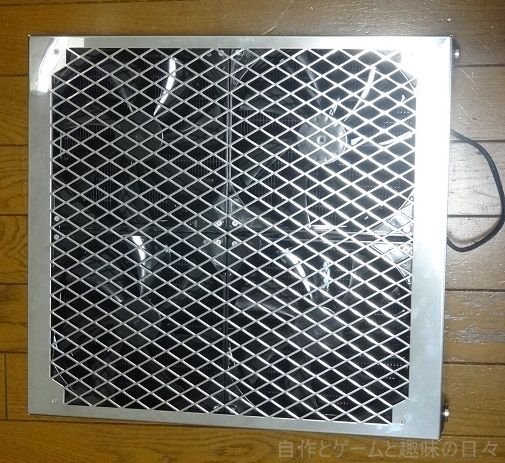 下の画像のようなファングリルに収納するので、ファン9個分のケーブルは収納が厳しい上に、