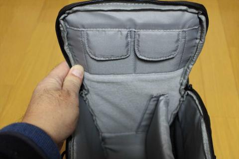 蓋にもポケットが2つあり、レンズキャップやメディアなどの小物を入れると良いでしょう。