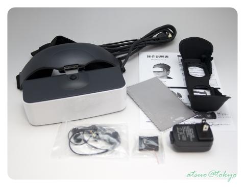 付属品は本体の他、遮光カバー、電源アダプタ、HDMI延長コネクタ、イヤフォン、クリーニングクロス、説明書になります。