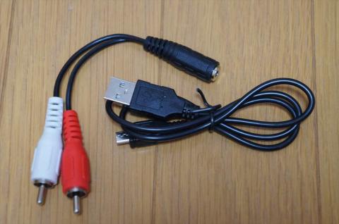 オーディオ変換ケーブル、充電用のMicroUSB-USBケーブルが付属しています。