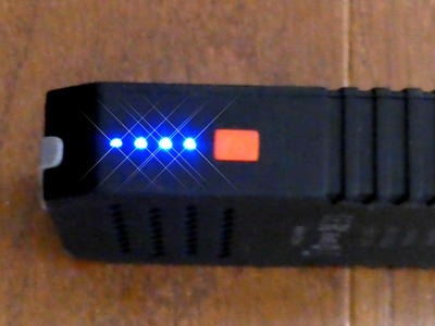 電源ボタンを押すとLEDインジケータが光ってバッテリー残量をお知らせ。