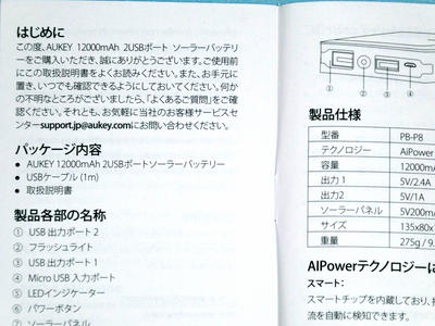 AUKEYのソーラーチャージャー機能付きモバイルバッテリーのレビューです。