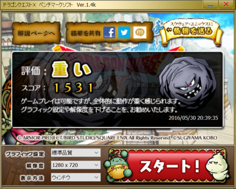 ついでにWindowsのドラクエベンチマークは評価として重い(スコア:1531)ですが、Z3735F(スコア:850前後@重い)とは違っていて、グラフィックの設定を下げればなんとか可能といった感じの表現になっています。z8300ではグラフィック性能が上がっているというのは伊達ではないようです。ただし、それ以外のCPU性能についてはイマイチな結果が多く、Z3735Fとさほど変わらない結果のものが多いです。
