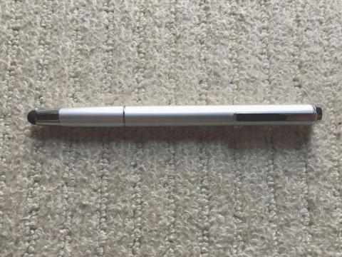 形状としては、ごく普通のボールペンのキャップ部に、タッチペンの先が付いているというものです。ボールペンとしては少しボディー形状が単純すぎますが、タッチペンと考えればこうなるのでしょうか。