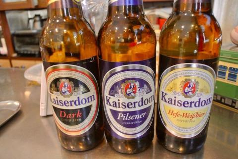 ドイツビール カイザードームのピルスナーとダークラガー(黒)とヴァイツェン(白)