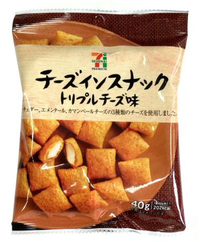 セブンプレミアム チーズインスナック トリプルチーズ味です。