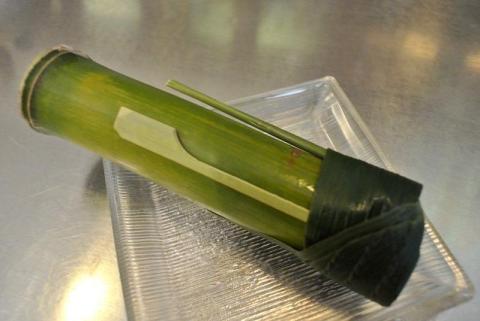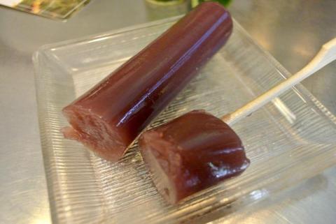 生命力の強い若竹を選び、そこに炊きたての水ようかんを流しこんだ風流。