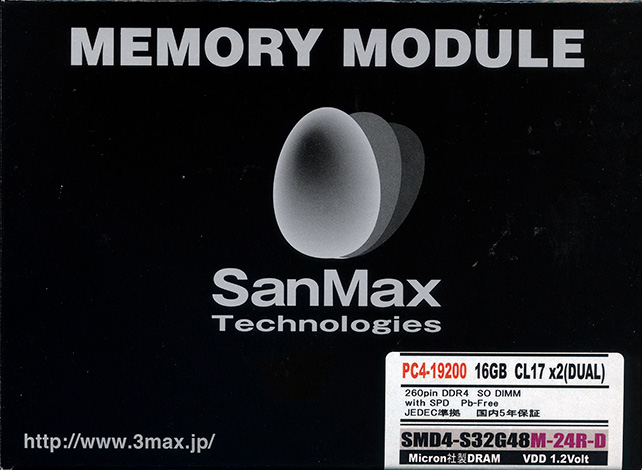 店頭で持ち帰ることができるDDR4-SODIMMで、16GBx2=32GBで一番早いメモリを購入しました。