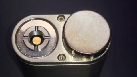 アトマイザー上部のリキッド注入キャップを外した常態を上から見た画像になります。