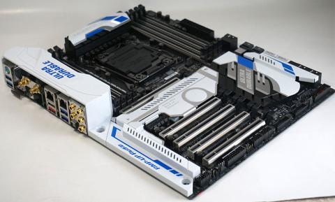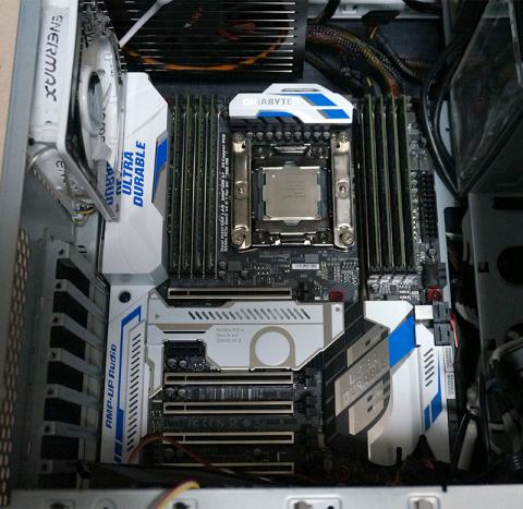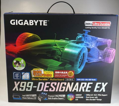 ギガバイトのX99製品では上位※にするマザー。G1ゲーミングシリーズではなく「Designare」というワークステーション寄りを意識したブランドに位置する。個性的なビジュアルと多機能マザーでありながらATXサイズに収めているのもポイント。