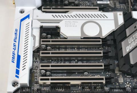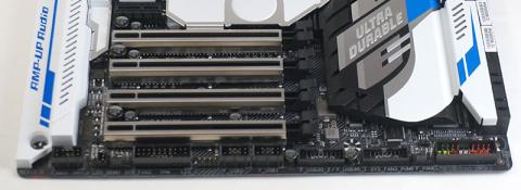 ATXサイズのX99マザーの場合メモリスロットやCPUとの兼ね合いで拡張スロット部をATX標準の7段分から1段減らして6段分にしているモデルが多いのだが、このモデルはがっつり7段用意している。