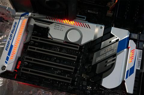 最早笑ってしまったのがコレ。このマザーM.2のカバーがデザイン上の特徴でパッケージでもそこをアップにするくらいアピールしているし発光ポイントの1つ。