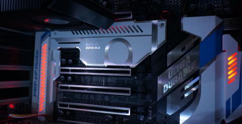 M.2スロットは例のカバー下にあるので装着時はネジ止めされているカバーをはずす。