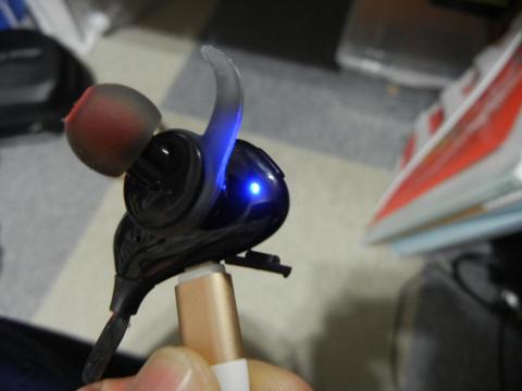 充電時は赤いLEDが点灯し、完了すると青いLEDが点灯します。
