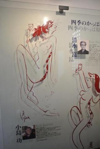 奥様河童はシリーズ中ずっと変わらないのですが、旦那河童は時代とともに変遷したことが判る展示なんです。