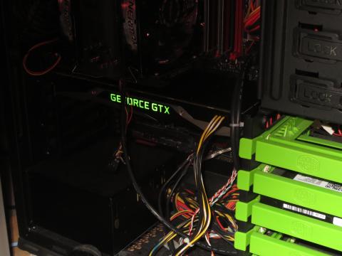側面の”GeForce GTXロゴ”はパワーオンでライトグリーンに光ります。