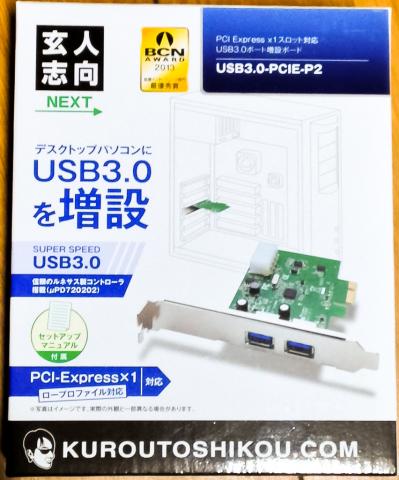 そこで部屋を探し回って 玄人志向 USB3.0増設インターフェースボード USB3.0-PCIE-P2 を発掘。