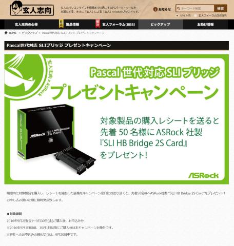 Pascal世代対応 SLIブリッジ プレゼントキャンペーン