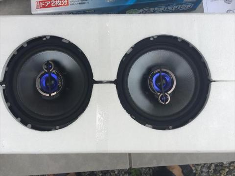 なんということでしょう。デッドニングを施したスピーカーだと見違えるような状態に。これならちゃんと真っすぐに音が出るであろう。また、音量を上げてもドアが共振したりもなさそうだ。