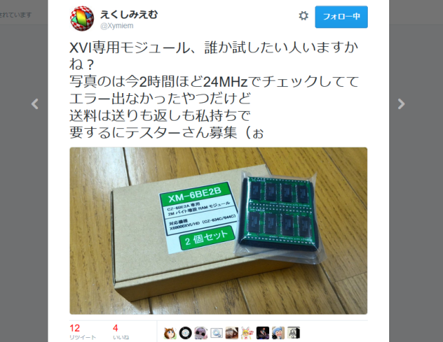 これを使えば、現在は入手が極めて困難なXSIMM等の互換メモリを探さずとも、親亀さえ持っていれば(製作者であるえくしみえむ氏は、親亀のほうも同様の互換品を配布している)かなり安価にXVIにメモリ増設出来るのである。