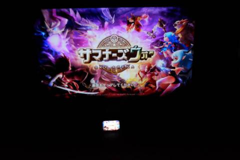 ちょっとゲームの画面を・・・w 壁に置いてあるのはiphone6sです。1mほどはなれればこれくらいの大きさですね。最大110インチまでOKだそうです。我が家のクロスは白っぽい色なのですが、少しボコボコしているので投影向きではありませんが、ここまで映ればOKですね^^