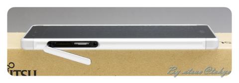 左側面には、microSDスロットと microSIMスロットがあり、パッキンの付いたフタが付いています。