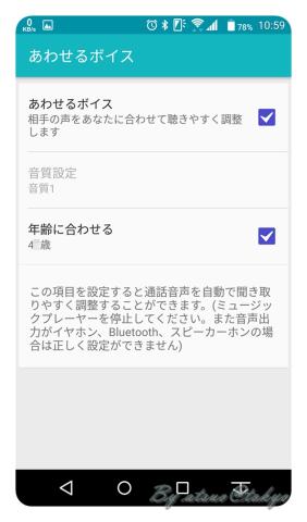 別途、スマホの設定内に「プロフィール」という項目があり、誕生日、性別、身長、体重を登録するのですが、万歩計の為だけに使われているのだと思ったら、この通話の声を聞こえやすくする機能でも年齢が使われているようです。