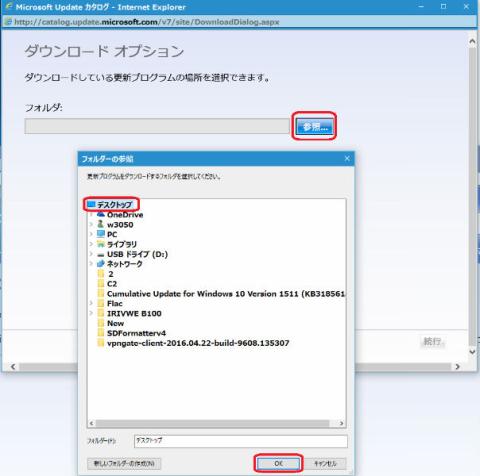 「ダウンロードオプション」画面が現れ、「参照」ボタンをクリックして、ダウンロード場所を指定し、「OK」ボタンをクリックします。