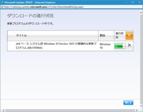 Windows10 Pro 64Bitの累積的な更新プログラムのダウンロードでは、本日の午前8時30分以降はフリーズ状態でした。