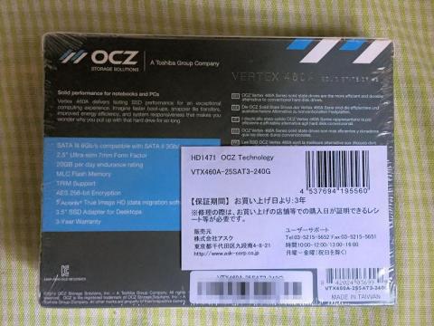 たまたま比較的性能が良いMLC NAND採用SSDが安かったので購入したのですが、これがまたOCZ製でした。