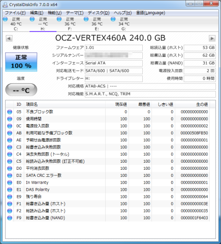 同じOCZ製でも、VECTOR 180やTRION 100では温度が計測出来ていたのですが、VERTEX 460Aでは温度が表示されません。モデルが古いことが影響しているのでしょうか。