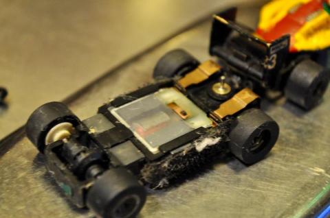 完全なニコイチ改造車で無理やり4WDなんてのもありましたが、溝とピンを使うスロットカーでは効果薄でした。