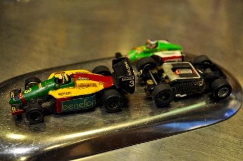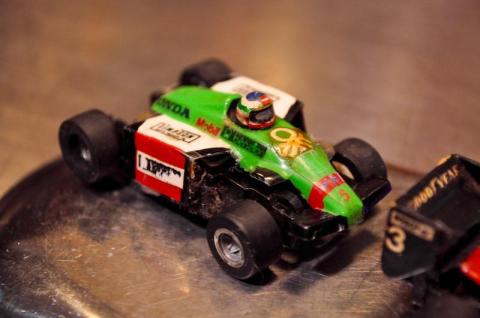 トミー社が2台のスロットカー(赤と青のフォーミュラカーだったか、グループCカーだったか)