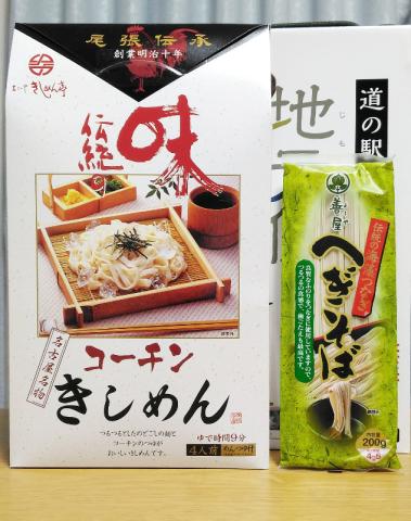 左から「名古屋名物 きしめん」「善屋 へぎそば」