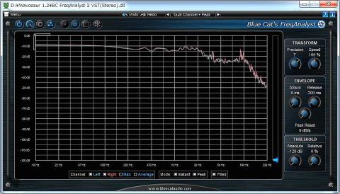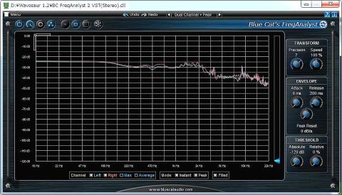 下画像でグラフの高低位置はレベルとは無関係です 右端22KHz 高域ピークが約10KHzです