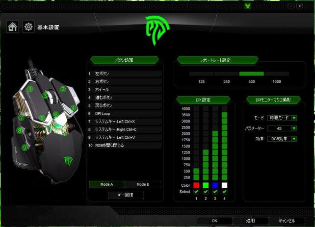 ボタン設定などは、専用ソフトで調整をする。