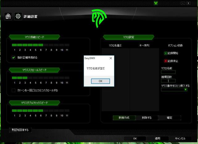 記録しようとすると、『マクロ名前が空だ』という、謎の日本語が表示されるだけで設定が出来なかった。