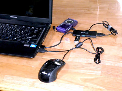 USBハブを用いてUSBメモリとデジカメを同時に繋いでみたり。