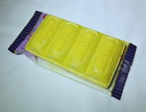 大きさは、よくあるアイスモナカと同サイズで4等分に