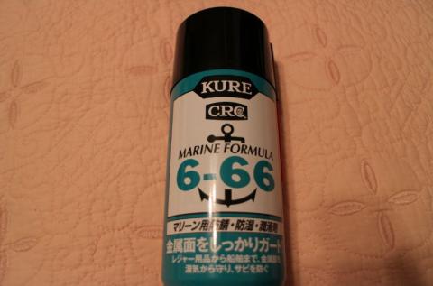 KURE CRC6-66 マリーン用防錆・防湿・潤滑剤と書いてあった。何でオートバックスにマリーン用の潤滑剤が置いてあるかが気になったが、6-66と言う名前だけで用途も考えずに買ってしまった。ただ潤滑剤なのは間違いないので5-56代わりに使えないこともないかとは思う。