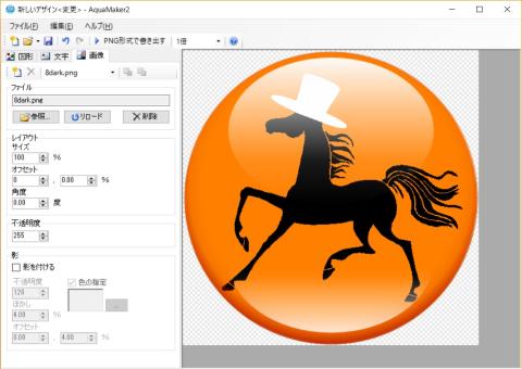 完成画像は背景色を指定してPNG形式で保存出来る他、背景を透明にすれば、アルファチャンネルつきの透過PNG画像となる。