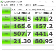 性能としては、当初の予想の8割としてリード:448MB/sライト:416MB/sよりはるかに良く