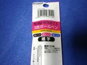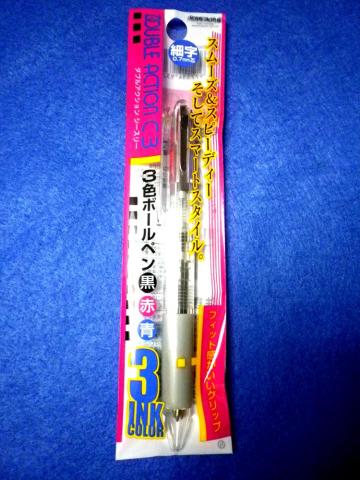 このボールペンは3色ボールペンで100円です 信じられない値段ですね ゴムグリップも付いているし、替芯も用意されているようですしビック・リです 製造国は不明(ネット情報では中国製)です。