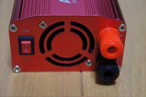 この黒と赤のソケットに、ケーブルを接続する必要があります。少し面倒ですが、その代わりに屋外でも使えます。